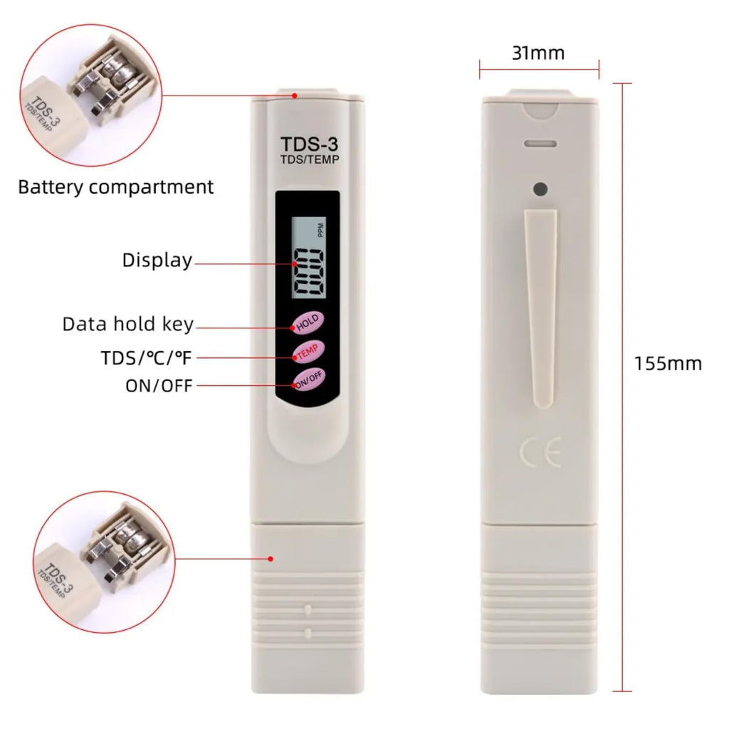 - Bright and clear LCD screen shows instant results, making it easy to check water purity anytime.