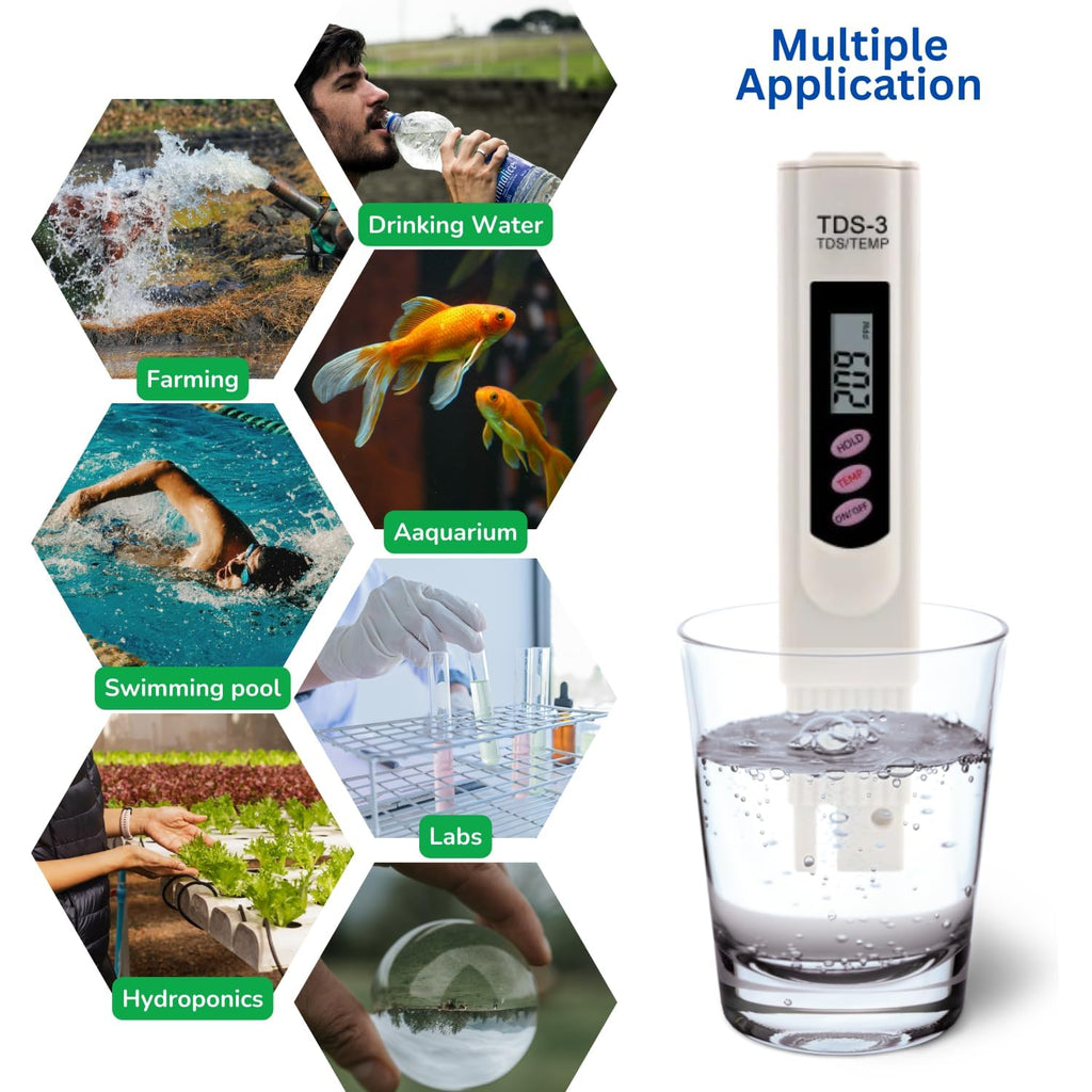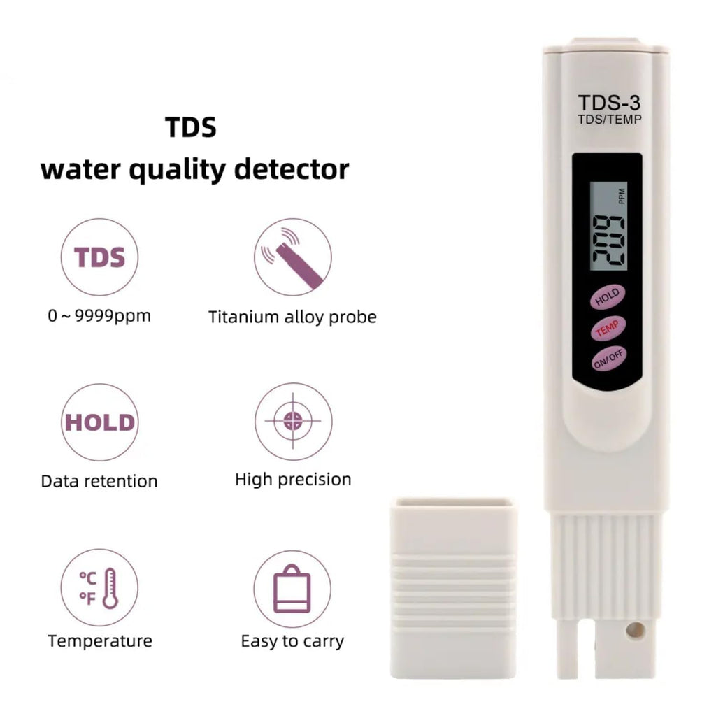 - Measures TDS (Total Dissolved Solids) in seconds, ensuring accurate PPM readings for RO, drinking water, aquarium, and hydroponics use.